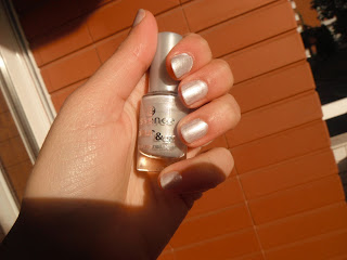 Esta semana não resisti a experimentar o verniz que tinha recebido do concurso! No vidrinho parecia mais «fofinho» com reflexos rosa mas não unhas é um prateado excelente! Adorei mesmo.